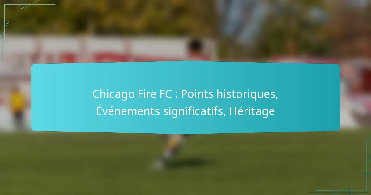 Chicago Fire FC, fondé en 1997, a une histoire riche au sein de la Major League Soccer, marquée par des réalisations notables et un engagement envers la croissance du soccer aux États-Unis. L’héritage du club comprend plusieurs championnats et une équipe dynamique de joueurs influents, reflétant son statut de joueur clé dans le soccer américain. Des événements significatifs, tels que des changements de propriété et des initiatives communautaires, ont encore façonné son identité et l’engagement des fans au fil des ans.