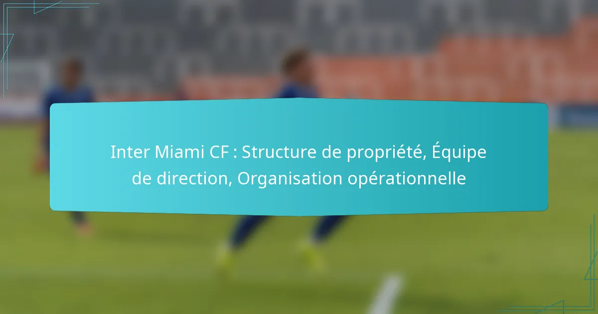 L’organisation opérationnelle d’Inter Miami CF est conçue pour soutenir ses ambitions compétitives en Major League Soccer (MLS) grâce à une équipe de direction bien définie, des pratiques de recrutement stratégiques et un accent sur le développement des joueurs. Cette structure met l’accent sur la collaboration entre la propriété, la direction et le personnel d’entraîneurs pour créer un environnement cohérent propice au succès.